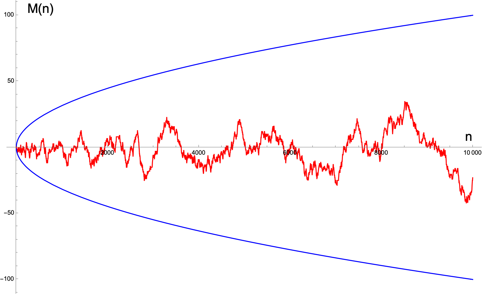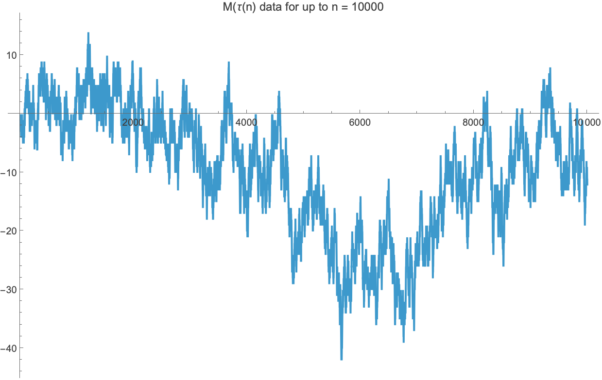 This looks resembles a random Browninan motion and resembles the graph of the Mertens function.
