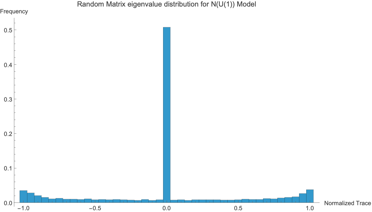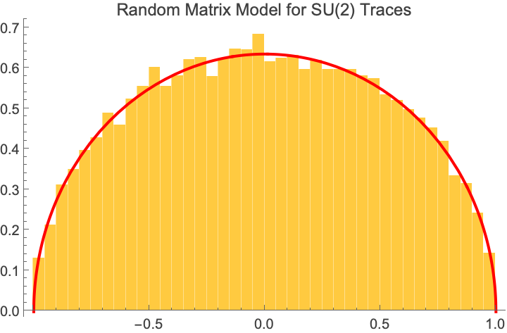 On the right: Distribution eigenvalues of an ensemble of 10000 random SU(2) matrices
