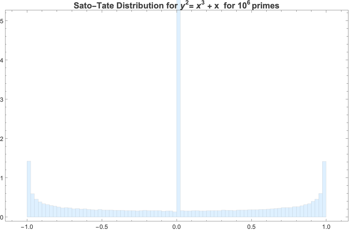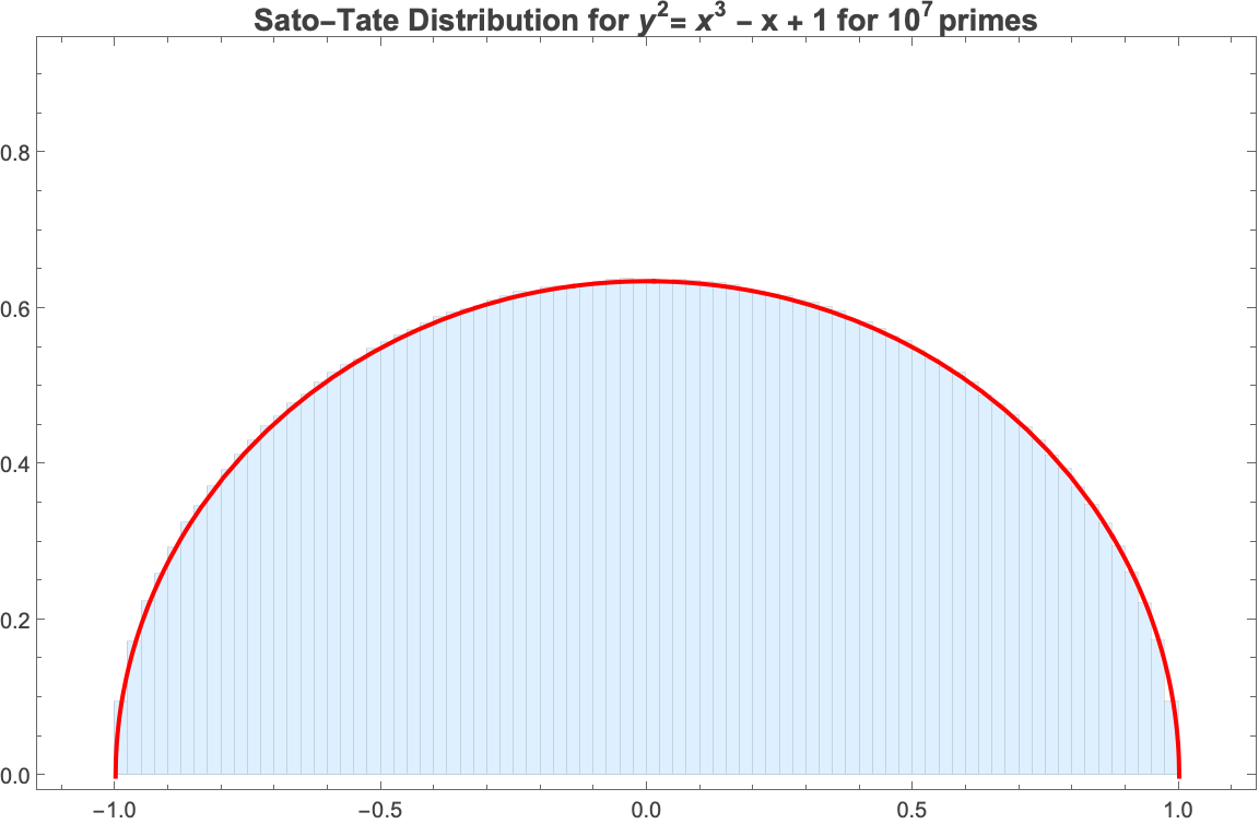 The group wrt which the x_p for X are equidistributed are known as Sato-Tate groups (ST(X)). Sato-Tate groups of X are compact Lie groups containing a dense subset of the image of a Galois representation that maps the Frobenius elements onto its conjugacy classes.